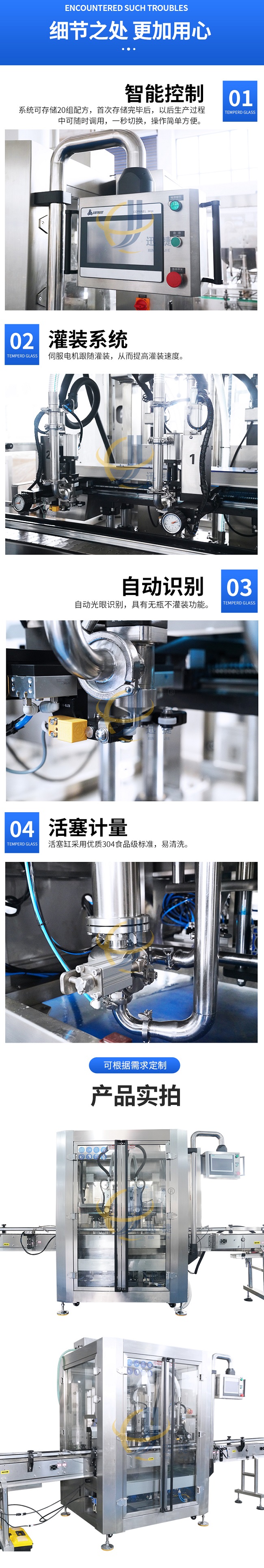 這款全自動跟蹤式醬料灌裝機是本公司研發的新款專為醬廠研發的生產設備,跟蹤式醬料灌裝機適用范圍:沙拉汁、調味汁、千島醬、番茄醬、胡椒醬、糖漿、蜂蜜、枇杷膏、辣椒醬、牛肉醬、洗手液、洗衣液等的灌裝。
