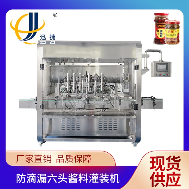 1.香辣醬自動灌裝機的灌裝嘴設有防滴漏裝置,確保灌裝無拉絲、不會滴漏機